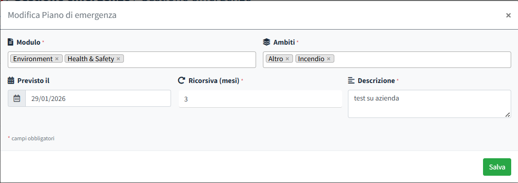 - Cliccando sull’icona della matita, è possibile modificare un piano emergenza