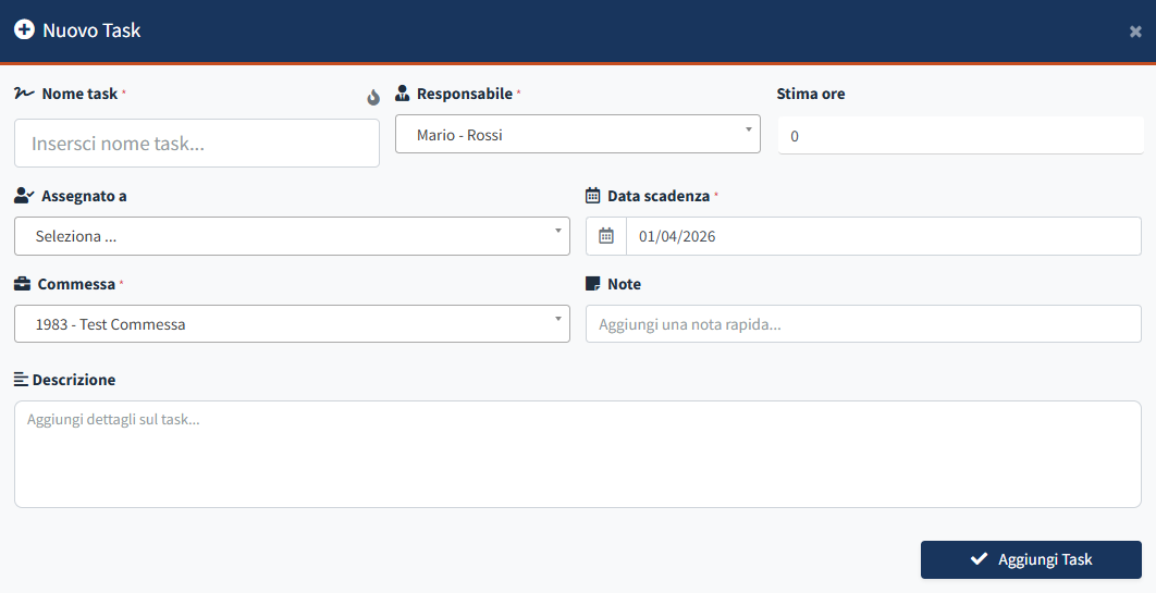 - Dopo aver completato la compilazione, conferma l'operazione premendo il tasto Aggiungi Task.