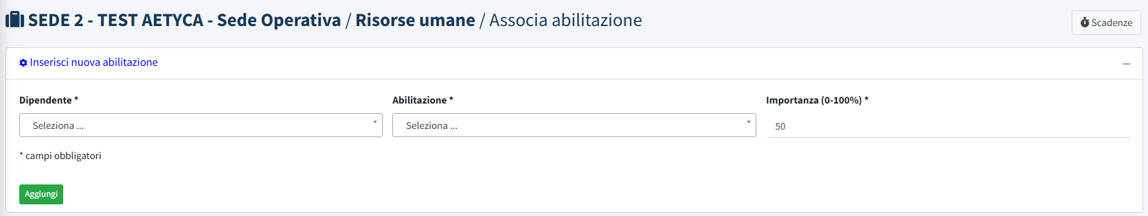 - Per selezionare le abilitazioni dalla select, è necessario configurarle nella pagina Abilitazioni