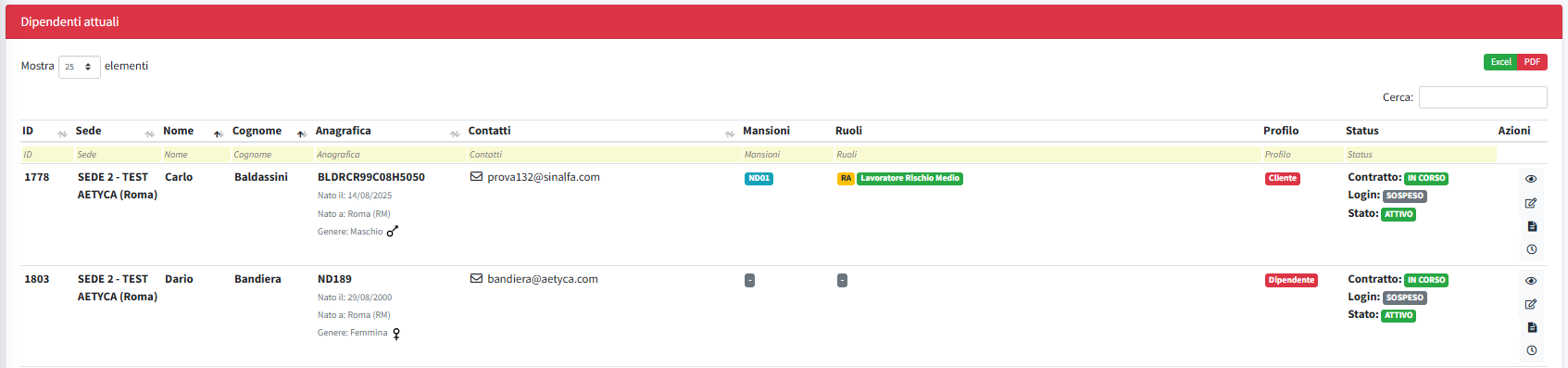 - Le date di inizio e fine contratto impattano sullo stato di attività del dipendente.