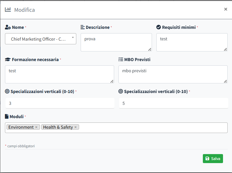 * Cliccando sull’icona della matita, è possibile modificare una mansione